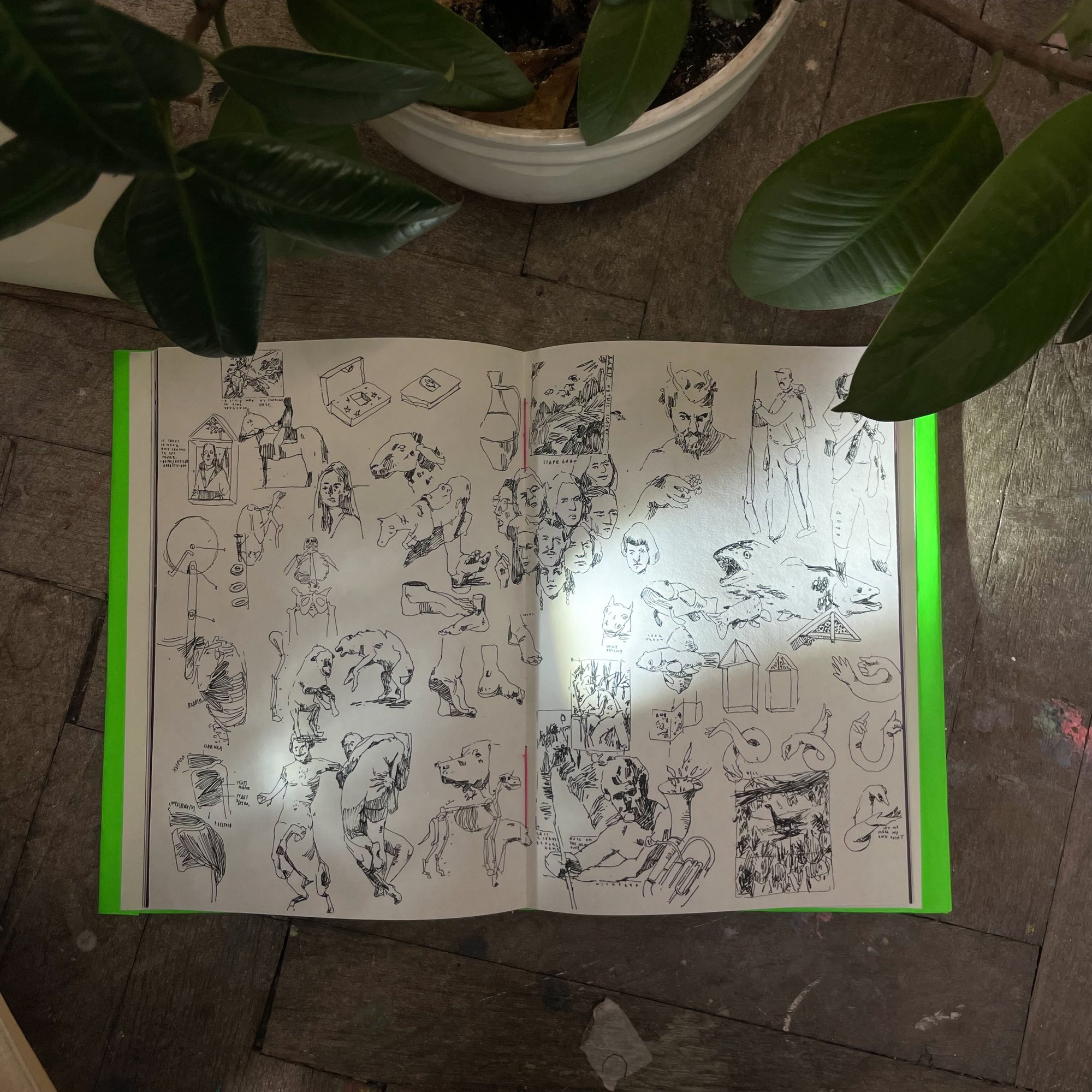 There are a lot of photographs, paintings, sketches and texts.